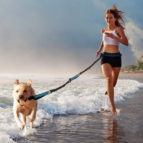 The shock-absorbing bungee leed reduces shock from pulling and tugging and absorbs abrupt changes of direction of your dog. The leed is comfortably secured to your waist while you are jogging with your doggo. This protects both you and your doggo and provides enough freedom for your dog to run freely in front of you, or beside you.